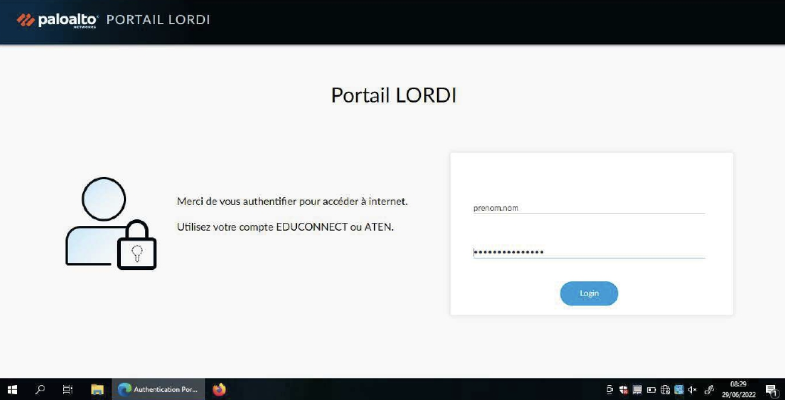 Les élèves peuvent se connecter au Wifi Lordi dans tout le lycée. Pour cela, une fois connectés, ils devront d'identifier dans la fenêtre suivante (mot de passe réseau) :